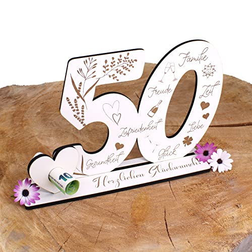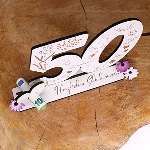 Details: Deko Aufsteller 50 Jahre Geburtstag Geldgeschenk Jubiläum Tischdeko zum verschenken für Geld Gutschein Karte