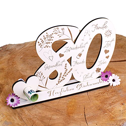 Details: Deko Aufsteller 80 Jahre Geburtstag Geldgeschenk Jubiläum Tischdeko zum verschenken für Geld Gutschein Karte