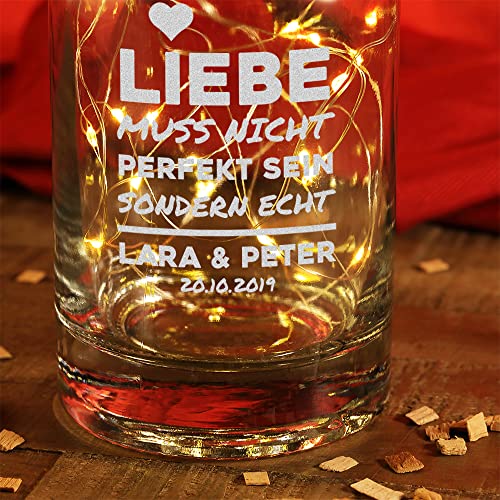 Details: Deko Licht Flasche mit personalisierter Gravur – mit Lichterkette – DIY Geschenkidee – Wohntrend mit LED-Technik…