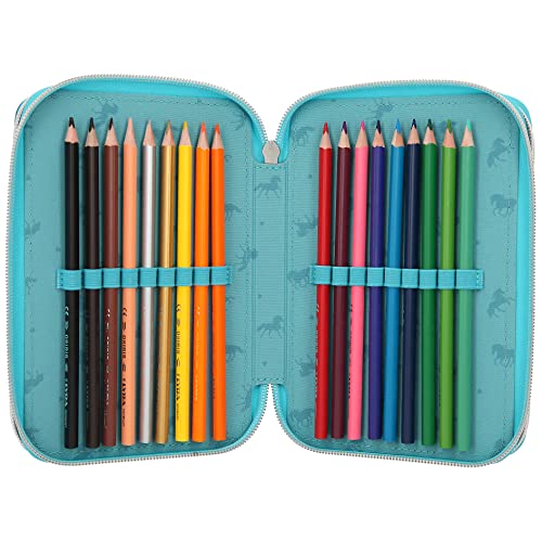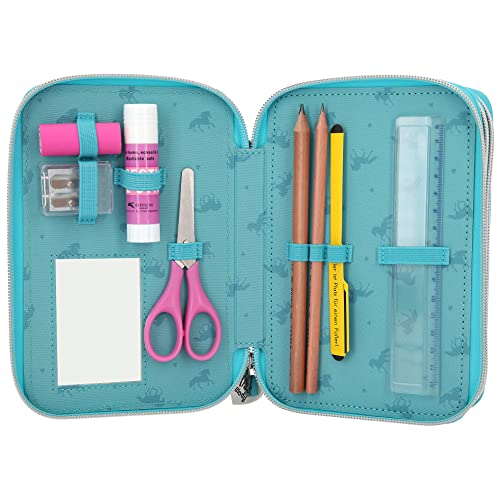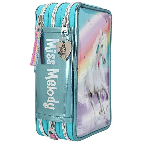 Details: Depesche 11055 Miss Melody – Gefüllte 3-fach Federtasche mit traumhaftem Pferde-Motiv, türkise Federmappe ca. 7,5 x 13 x…