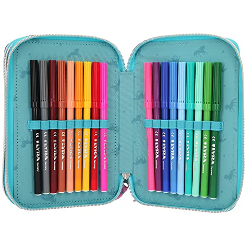 Gefüllt mit 18 Buntstiften und 18 Filzstiften von Lyra sowie viel Zubehör