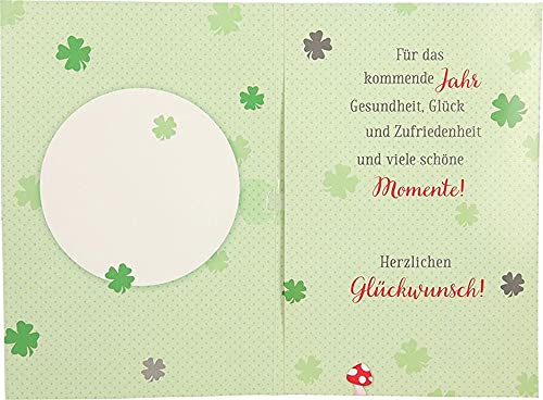 Innenseiten ebenfalls bedruckt, eine mit Spruch, die andere mit Platz für persönliche Worte, Botschaften und Nachrichten für das Geburtstagskind