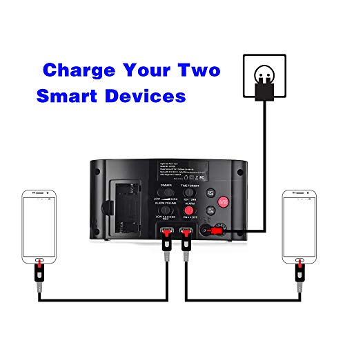 💡𝗭𝘄𝗲𝗶 𝗨𝗦𝗕-𝗟𝗮𝗱𝗲𝗮𝗻𝘀𝗰𝗵𝗹ü𝘀𝘀𝗲💡 Mit dieser Nachttischuhr können zwei Geräte, Handys oder Tablets gleichzeitig aufgeladen werden. Schließen Sie einfach Ihr Ladekabel an den USB-Anschluss an, bevor Sie ins Bett gehen. Ihre elektronischen Geräte werden beim Aufwachen am Morgen vollständig aufgeladen. Es ist einfach, eine schlaffreundliche Umgebung einzurichten.
