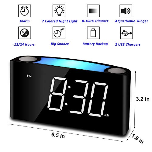Details: Digitaler Lauter Wecker für Kinder Schlafzimmer, 7-Farben-Nachtlicht, Große LED-Anzeige mit Einstellbarer Helligkeit…