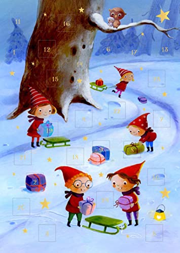 Display Mini-Adventskalender mit Umschlag zum Verschicken mit zauberhaften Wichteln: Wichtel-Weihnacht. Mit 4 x 9 Ex.