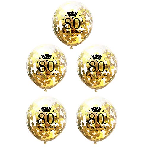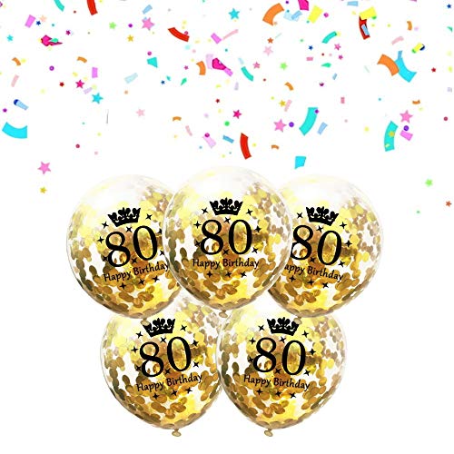 Details: DIWULI 5 Stück Geburtstags Luftballons, Zahl 80, Happy Birthday, Konfetti Sterne Latex-Ballons Gold, Zahlen-Ballons…