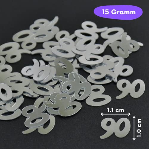 🎉 Ein Zahl 90 Konfetti ist ca. 1,1 cm lang und ca. 1,0 cm hoch. Farbe: Silber.