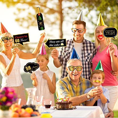【Weit verbreitete Anwendung】 Die Dekorationen der 60. Geburtstagsfeier sind ein einzigartiges und interessantes Design mit einem niedlichen Muster. Sie können viele lustige Möglichkeiten machen, diese niedlichen Fotokabinen-Requisiten zu verwenden! Es ist wie eine Sofort-Fotokabine, wo immer Sie sind! Fotorequisiten zum 60. Geburtstag sind perfekt für Geburtstagsfeier, Freundesparty, persönliches Porträt und Familientreffen usw.