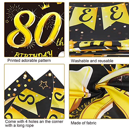 ⭐【Hohe Qualität】Schwarz gold 80. Geburtstag Hintergrund banner für Mannn Frau aus Polyestergewebe, kein Kunststoff, Kupfer nicht rosten, weich und langlebig, Digitaldruck, helle Farbe, hohe Farbechtheit, faltbar. Schwarz gold 80. Geburtstag banner, einfach durch die Kupferöse aufzuhängen. Frau Mann 80 Jahre Banner eignet sich für die 80. Geburtstag Innen Draußen dekoration.