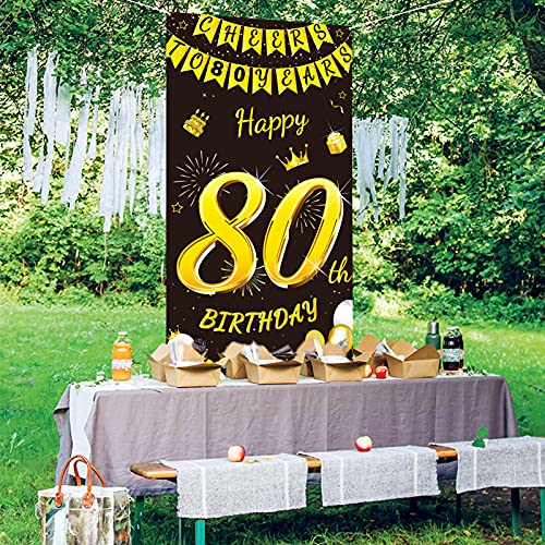 Details: DPKOW Schwarz Gold 80. Geburtstag Dekoration für Mann Frau, Schwarz Gold 80. Geburtstag Banner für Hintergrund Tür Deko…
