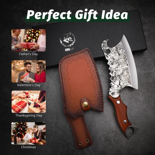 Küchen und Camping Messer – Dieses multifunktions wikinger messer ist für profiköche und amateure geeignet. Es eignet sich perfekt für die meisten täglichen arbeiten in der küche, wie schneiden, würfeln, zerkleinern von gemüse und obst, filetieren von fisch, entbeinen von fleisch, hacken von kleinen und mehr. Es ist auch zum grillen, jagen, wandern und campen geeignet. Dies ist auch ein ideales küchengeschenk für Ihre familie und freunde zu geburtstagen, weihnachten und anderen anlässen.