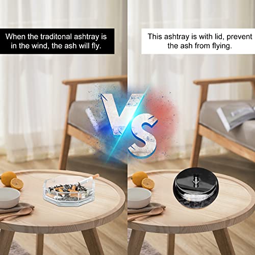 【Winddichtes Design】 Aschenbecher für den Außenbereich mit Abdeckung, um zu verhindern, dass Regen fällt. Der rauchfreie Aschenbecher kann den Esstisch absolut sauber halten, den Geruch von Zigarettenkippen isolieren, die Luft frisch halten und Ihnen und Ihren Gästen das angenehmste Raucherlebnis bieten.