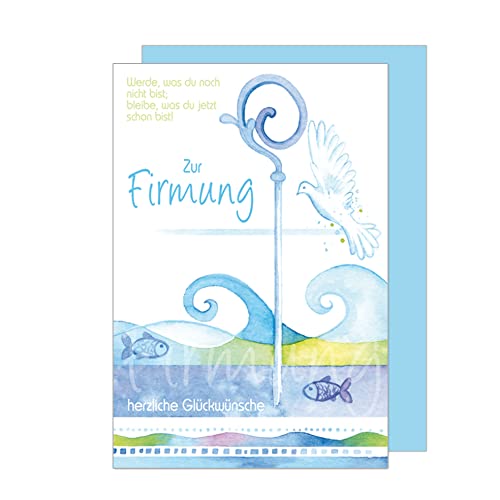 Details: Edition Seidel Premium Glückwunschkarte zur Firmung mit Umschlag. Firmungskarte Grusskarte Taube Wasser Fisch Junge…