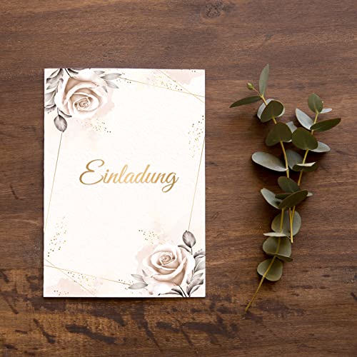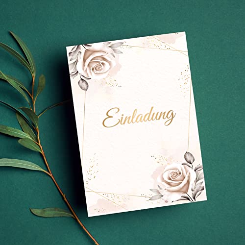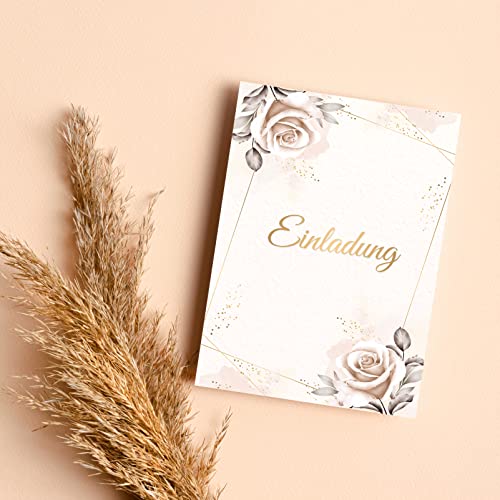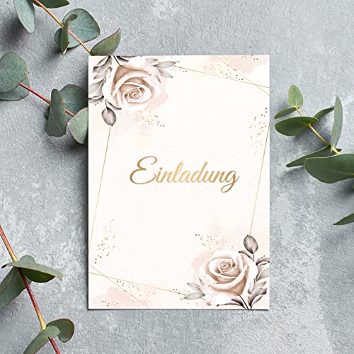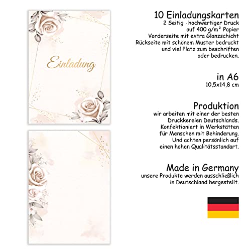 Details: E&G Klasse Einladungskarten Rosen beige 10 er Set 2 seitig – hochwertig Einladung Geburtstag Feier Fest Jubiläum 20 30…