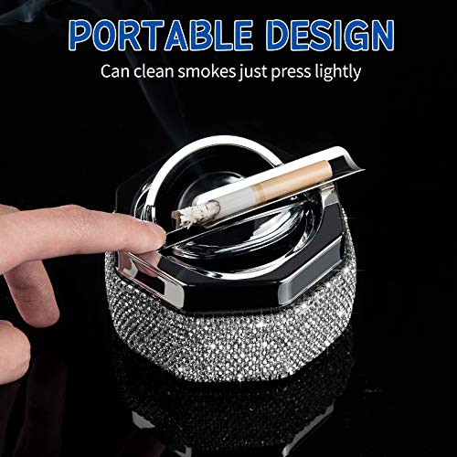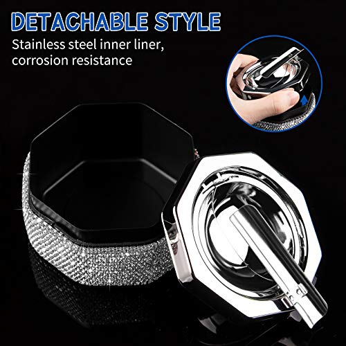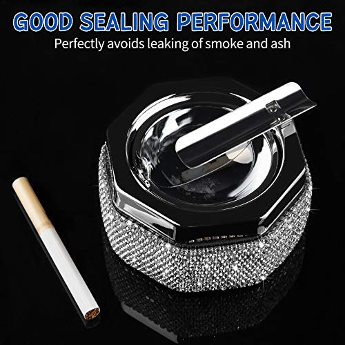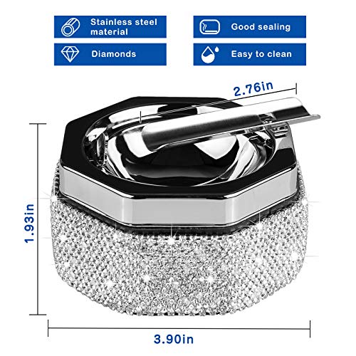 Details: Eing-Aschenbecher, Edelstahl-Aschenbecher mit Deckel und Strasssteinen, Zigarettenaschenbecher für den Innen- und…