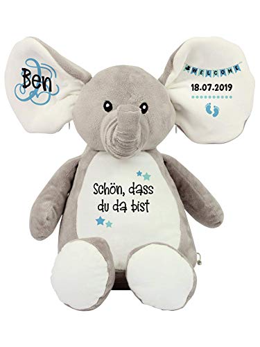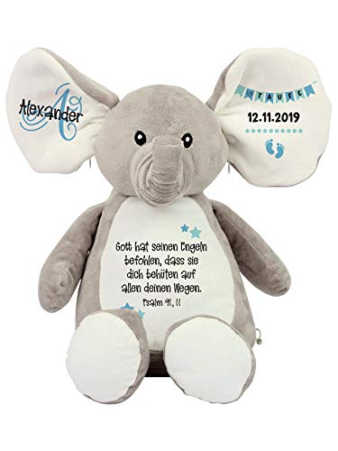Details: Elefant Baby-Geschenk Kuscheltier (46cm) Geschenkidee zur Geburt & Taufe personalisiert mit Namen Geburtsdaten…