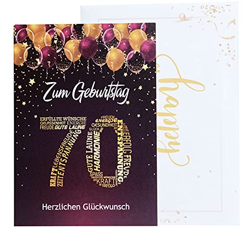 Lieferumfang: 1x Geburtstagskarte Nummer 70, mit Kuvert. Größe der Klappkarte Nummer 40: A5, 14,8×21 cm, geöffnet: 28,6 x 21cm, Innenseite Weiß. Made in Germany.