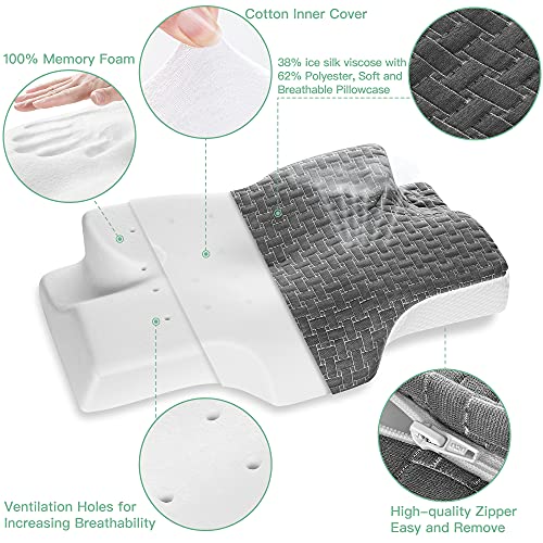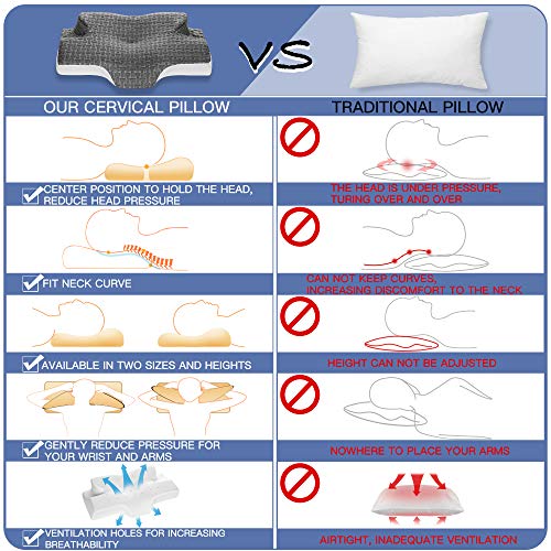 WEG VON HALS- UND SCHULTERSCHMERZEN: Dieses Zervixkissen besteht aus hochwertigem Memory-Schaum mit mäßiger Härte und Weichheit und erhöhter isolierter Druckverteilung. Entspannen Sie die Nackenschmerzen und die Schultersteifheit, helfen Sie Ihnen, die Nacht durchzuschlafen, schmerzfrei im Nacken zu sein und Ihre Schultermuskeln sanft zu dehnen und zu entlasten, während Sie gleichzeitig Ihren Nacken stützen.
