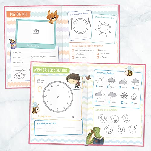Details: Endlich Schulkind! A5 Erinnerungsbuch zur Einschulung für Mädchen by Häfft [Rosa] Hardcover Einschulungsalbum…