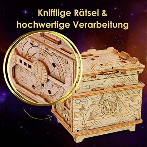 🚀 Wiederverwendbar – Nach dem lösen der Rätselbox, kannst du die Escape Room Box wieder zusammenbauen und erneut spielen. Falls du nicht weiter weißt, helfen wir dir mit Tipps und Tricks auf die Sprünge.