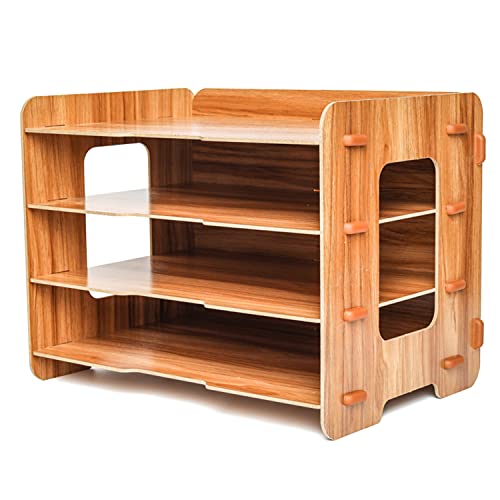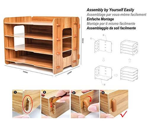 EXERZ Holz-Akten-Organizer 4 Ebenen Für Schreibtisch Ordnung, Bürobedarf, Dokumentenhalter, Schüler Hausaufgaben…