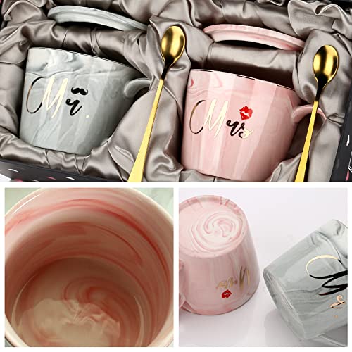 ✔ Geschenk-Box-Verpackung: Alles, was Sie erhalten, ist auf dem Bild 2 abgebildet. Wird in stilvoller Verpackung mit seidenmatter Innenseite geliefert. Dieser Artikel ist fertig zum Verschenken. Keine Notwendigkeit, Umverpackung zu erhalten.1 x 340 ml Mr Becher (grau), 1 x 340 ml Mrs Tasse (pink), 2 x Tassendeckel, 2 x Löffel. Mehr Zubehör im Angebot, erfüllt Ihren weiteren Bedarf an Kaffee oder Geschenk!