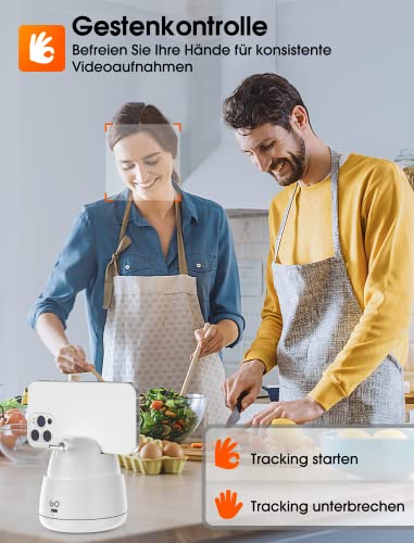 [Gestenkontrolle macht Ihre Hände frei] Um die Videoaufnahme bequemer zu gestalten, verwendet der hohem GO Auto Tracking Stativ eine Gestensteuerung, um Ihre Hände frei zu machen. Machen Sie die „OK“ Geste, um die Verfolgung zu aktivieren, und die “ PALM“ Geste, um die Verfolgung zu unterbrechen. Hohem GO Smart Tracking Telefonhalter ermöglicht weniger manuelle Einstellung, die mehr Komfort beim Kochen, Schminken, Malen und Drehen des Tutoial-Videos usw. bringt.