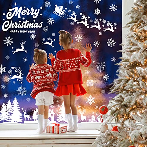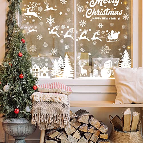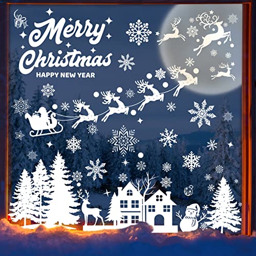 🎅Schöne Fensterbilder Muster:Weihnachts schneeflocken ,Weihnachtselech Weihnachtsschneemann und Rentier-Aufklebermuster sind bei Kindern beliebter,schaffen eine warme und schöne Weihnachtsatmosphäre und beginnen Ihre DIY-Dekoration für Weihnachten.