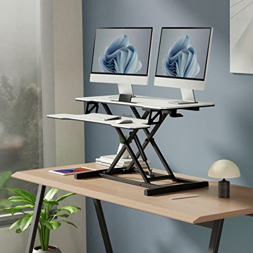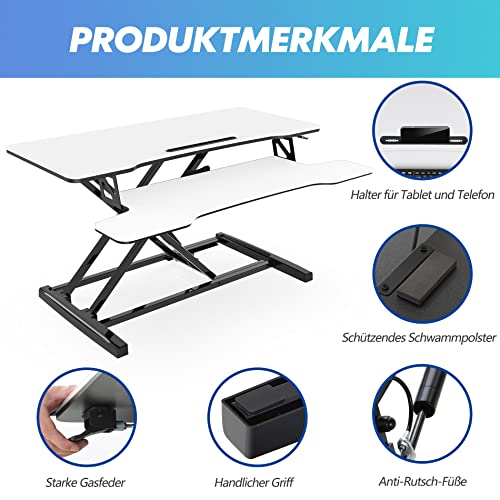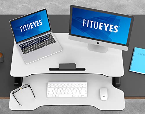 Details: FITUEYES Höhenverstellbar Schreibtischaufsatz Büro Sitz Steh Computertisch 92 x 40 cm Stehpult mit Tastaturablage…