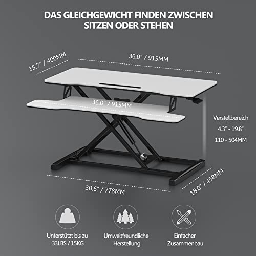 【Auf Wiedersehen sitzende Lebensweise】Unser Stehpult-Konverter ist höhenverstellbar von 11.5 bis 50.4 cm, so dass Sie abwechselnd im Stehen oder Sitzen arbeiten können. Dies sorgt für eine bessere Körperhaltung und hilft, Nacken-, Rücken- und Gelenkschmerzen vom langen Sitzen vor dem Computer zu lindern.