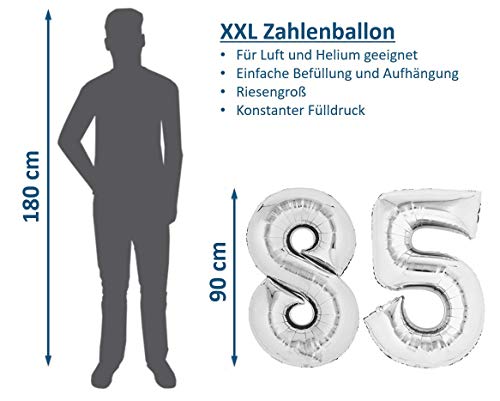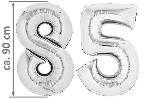 Details: Folienballon Zahl 85 Silber XXL über 90 cm hoch – Zahlenballon / Luftballon für Geburtstagsparty, Jubiläum oder sonstige…