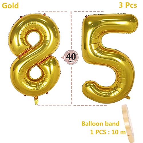 Details: Folienballon Zahl Deko Gold 85 für Frauen Männer, XXL 100cm Riesen Nummer Aufblasbar Helium Ballon Figuren Zahlen…