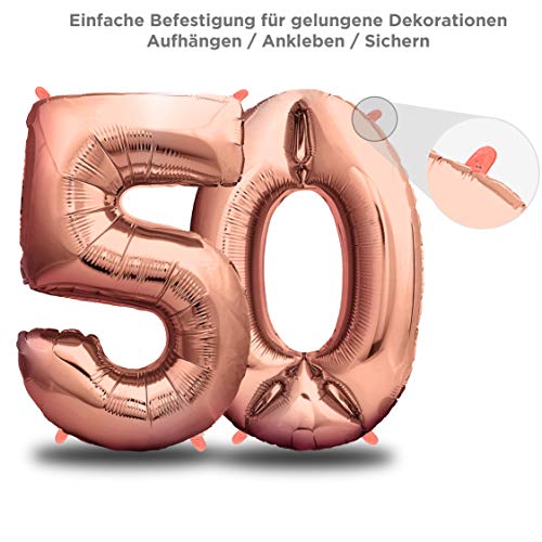 🎈LUFTBALLONS 50 GEBURTSTAG: Roségold Folienballons im Set (2 Stk.): XXL 40″ (101cm). Hochwertig verarbeitet, für schöne Geburtstagsmomente & Motto Partys. Für jedes Geburtstagskind geeignet, egal ob Mann oder Frau