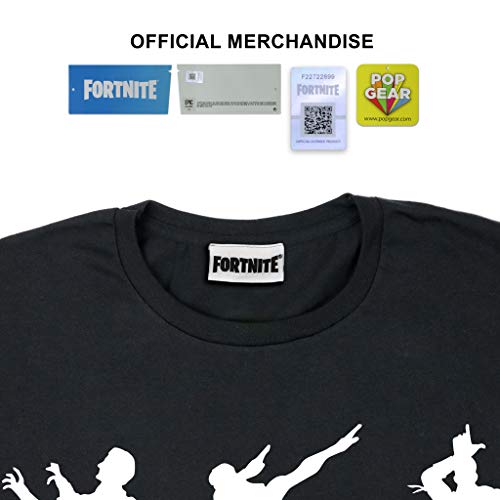 Dieses Stück offiziellen Fortnite Waren kennzeichnen die Emotes aus der Hit-Videospiel Fortnite ihre Tanzbewegungen auf einem offiziell lizenzierten Jungen T-Shirt vorführt.