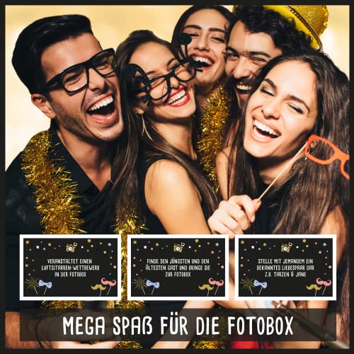 📸 NULL AUFWAND: Karten auslegen, los geht´s! Spielbar in jeder Fotobox. Tolles Kennenlernspiel für besondere Gästefotos. Inkl. 4 Blankokarten für eigene Ideen.