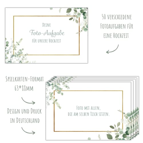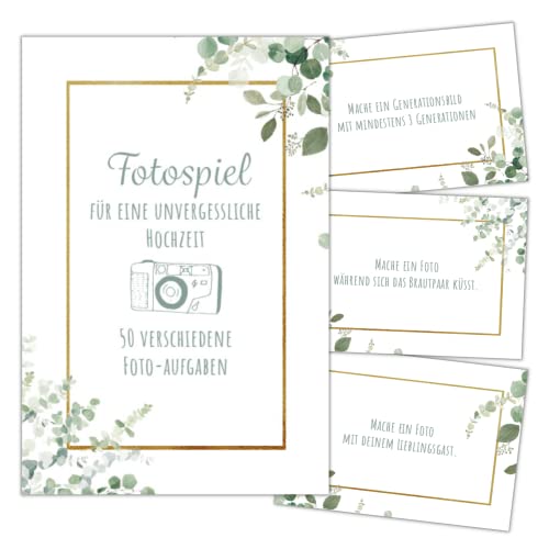 Tolles Hochzeitspiel für Gäste: Kartenspiel mit 50 Fotoaufgaben für Hochzeit. Perfekt zum Kennenlernen der Gäste untereinander