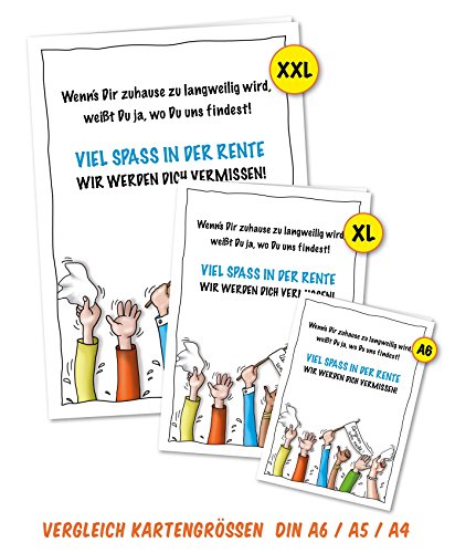 Große, humorvolle Karte (DIN A4) inklusive Umschlag zum Abschied bzw. zum Verabschieden eines Kollegen bzw. einer Kollegin in die Rente, den Ruhestand, die Pensionierung oder Altersteilzeit