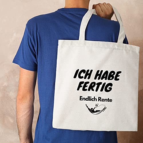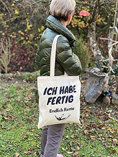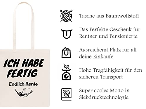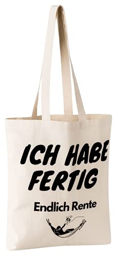 Details: FremiBag „Ich habe fertig“ Rentnergeschenk – Jutebeutel bedruckt mit langem Henkel, Stofftasche aus Baumwolle mit…