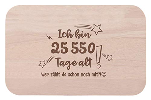 Details: Frühstücksbrettchen mit Gravur – Zum 70. Geburtstag – 25550 Tage alt – Wer zählt da schon noch mit? – Alter in Tagen…