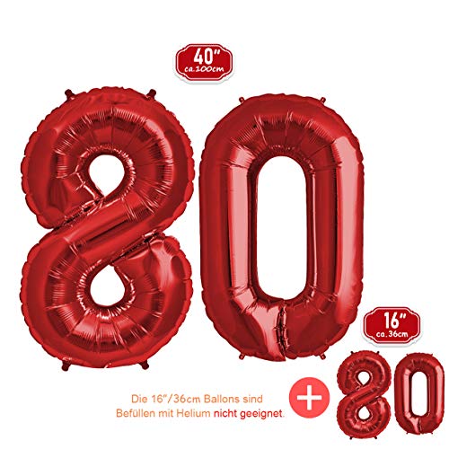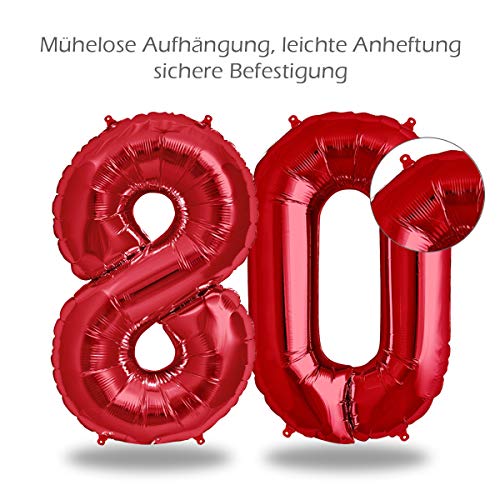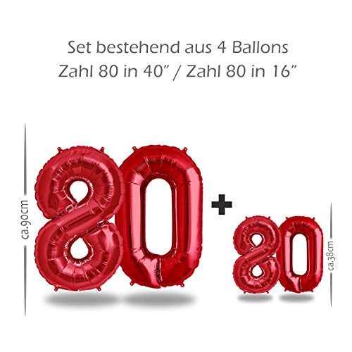Details: FUNXGO® folienballon 80 rot – 2 Stück – 42″ & 17″- luftballon zahl 80 – Zahlen rot Ballon 80 Deko zum Geburtstag, Hochzeit, Jubiläum oder Fest, Party Dekoration -100cm & 38cm- ballon rot 80