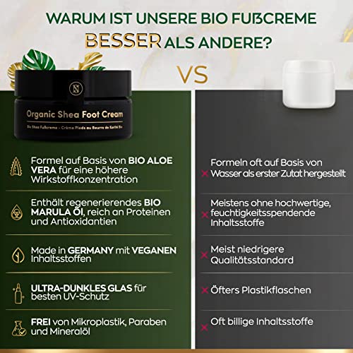 Details: Fußpflege BIO mit Sheabutter – 100ml – Fußcreme sehr trockene Füße + Rissige Fersen – Fußcreme gegen Hornhaut – Satin…