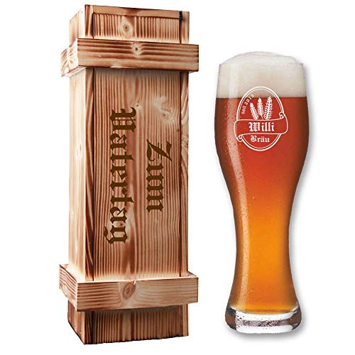 ✅ KOSTENLOSE GRAVUR: Das Weizenbierglas wird mit einem exklusiven Bierlogo graviert – ergänzt mit NAME + JAHRSZAHL – die Kiste kann mit maximal 3 Zeilen Text graviert werden.