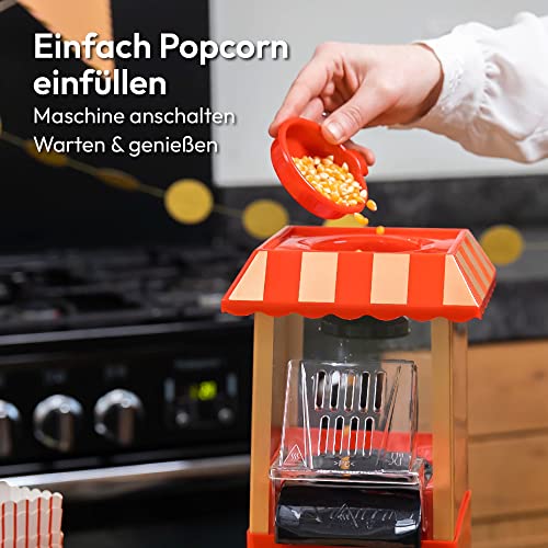 EINFACHE ANWENDUNG – Lege die Popcornkerne in die Pop Corn Maschine und drücke auf den Startknopf. Schon kannst Du in kürzester Zeit frisches Popcorn genießen. Zum Säubern einfach mit einem Tuch auswischen und fertig!