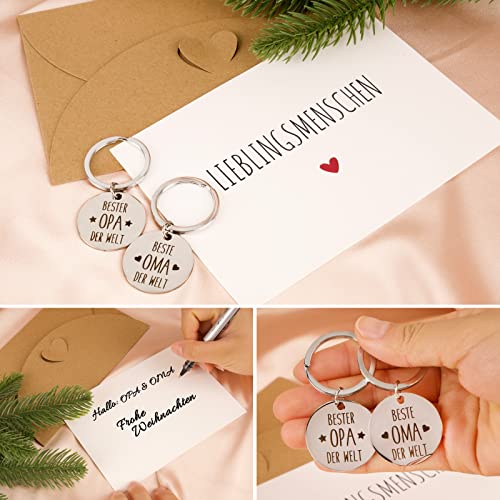 💖𝑨𝒏𝒛𝒂𝒉𝒍: 2* Schlüsselanhänger für Oma und Opa + 1* Grußkarte + 1* Umschlag, praktisch für Sie, um die Schlüsselanhänger in den Umschlag zu stecken und sie Ihrer Familie als Geschenk zu geben