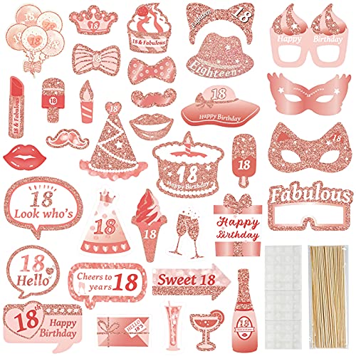 Hochwertige Material: Diese reichhaltigen und schönen 18. Geburtstag Photo Booth Props bestehen aus Papiermaterialien mit feiner Verarbeitung, exquisitem Aussehen, klaren und lebendigen Mustern, die nicht leicht beschädigt oder zerbrochen werden können.