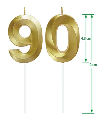 90 Geburtstag Zahl Kerzen Gold Geburtstagskerzen Cake Topper Geburtstag Kuchendeko Kuchen Dekoration ,für Hochzeit Party Hochzeit Jahrestag Feier Lieferungen