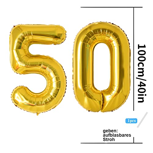 Gold luftballon 50 jahre: zahlen luftballon XXL Folienballon 40″ (101cm). Hochwertig verarbeitet, für schöne Geburtstagsmomente, Partys und Jubiläen. Für Männer Frauen 50.Geburtstagsparty