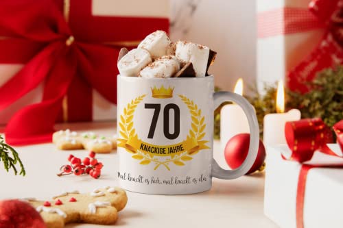 Geburtstags-Tasse Geburtstagsgeschenk 70 knackige Jahre Mal knackt es hier, mal knackt es da, 70ster Geburtstag