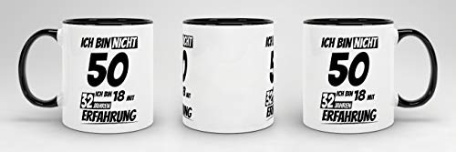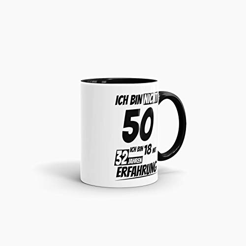Details: Geburtstags-Tasse“Ich bin 50 mit 32 Jahren Erfahrung“ Innen & Henkel Schwarz/Geburtstags-Geschenk/Geschenk-Idee/Lustig/mit Spruch/Witzig/Spaß/Beste Qualität – 25 Jahre Erfahrung