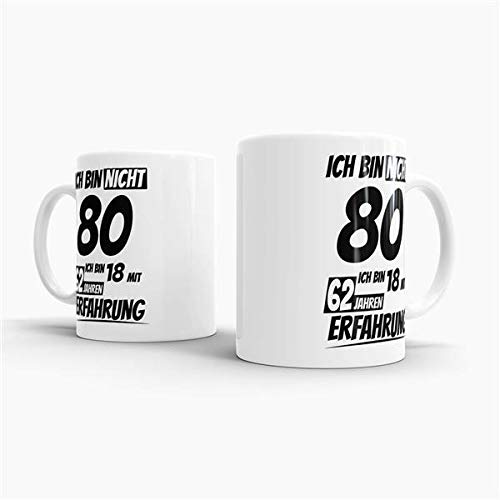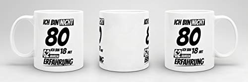 Details: Geburtstags-Tasse“Ich bin 80 mit 62 Jahren Erfahrung“ Weiss/Geburtstags-Geschenk/Geschenk-Idee/Lustig/mit Spruch/Witzig/Spaß/Beste Qualität – 25 Jahre Erfahrung